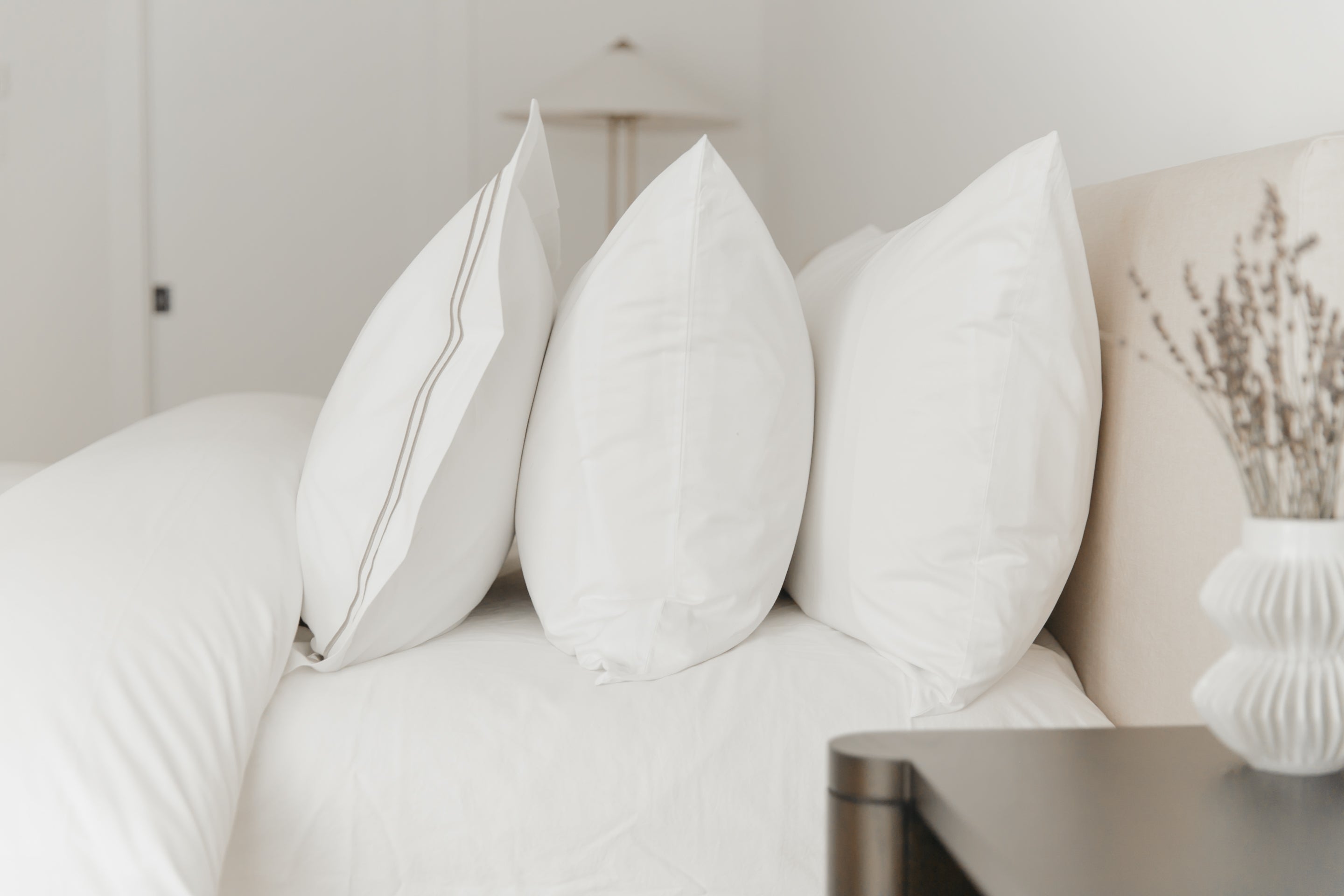 Transformez votre chambre en une retraite relaxante inspirée d'un hôtel. Fabriqué à partir d'un rembourrage en microfibre doux et moelleux recouvert de coton à fibres longues de qualité supérieure, l'O'Zenith présente un élégant passepoil doré et une bordure en boîte pour un soutien supplémentaire du cou. Excellent pour reprendre sa forme et conserver son duvet durable, cet oreiller est la définition du luxe intemporel des hôtels. Naturellement hypoallergénique et certifié OEKO-TEX®, garantissant que votre sommeil est exempt de niveaux nocifs de plus de 300 substances.